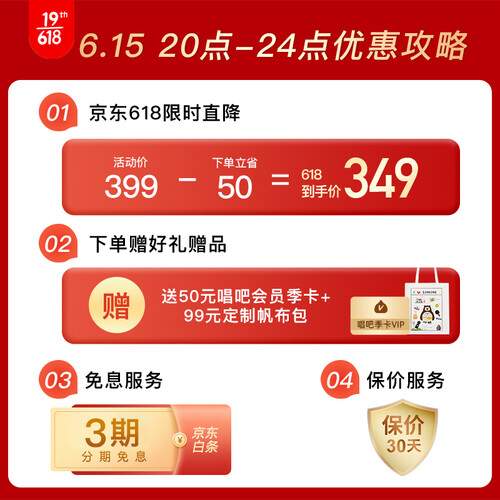 依托用户大数据研发,经过重多测试,能够避免啸叫发生。配备双人互联按钮,支持双人合唱功能,K歌更尽兴。