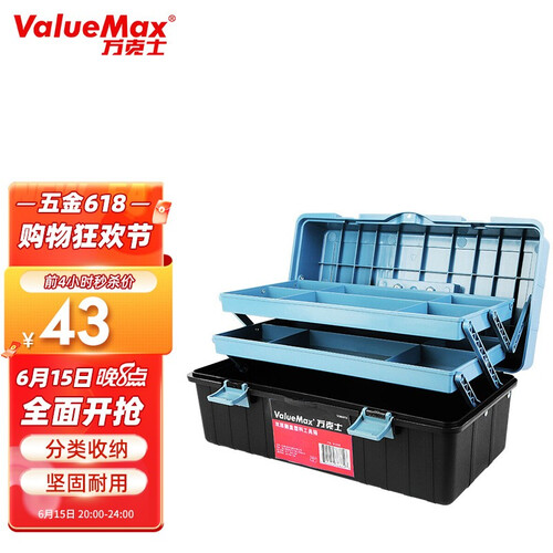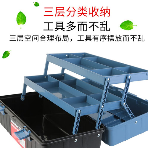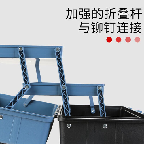 箱体加厚设计,并有多道加强筋,厚实承重,品质优异。内部采用三层折叠设计,能收纳大量工具和零部件。