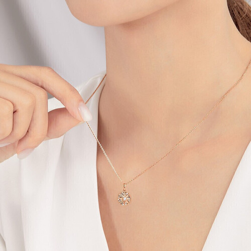 正圆轮廓八芒星脉络,中间镶嵌一颗主钻,立体感较强,凸显华贵与精致。18K金材质,质地坚硬牢固,不易磨损变形。
