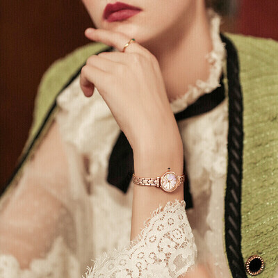 甄选天然母贝细细打磨而成,盘面波光粼粼,在光线的折射下更加美轮美奂。细密镶钻表框,与表盘相交辉映,更显生动耀眼。