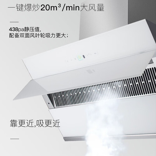 智能联控,体感操作,挥手去烟,零触碰不脏手。搭载自动清洗功能,加热旋转干洗,油污一甩即净,长效保持强吸力。