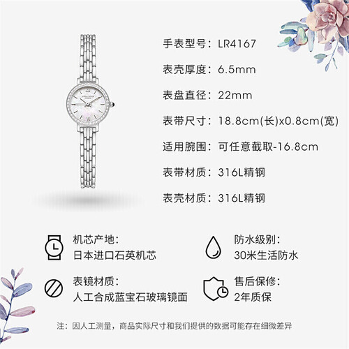 白贝母盘设计,光泽莹润,抬手间分外抓人眼球,同时外围镶嵌一圈水钻,提升整体形态美感。加持坚韧不锈钢表带,久用不易断裂。