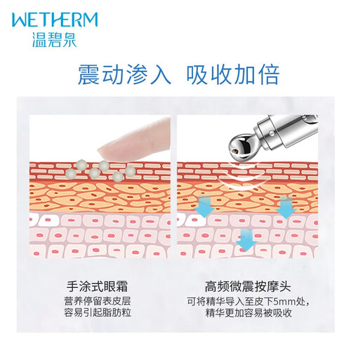 微震动小熨斗促进营养吸收,结合眼部的曲线,提拉紧致双眼。拥有三大修护配方,有效淡化黑眼圈,改善泪沟眼袋。