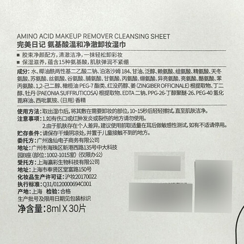 15种氨基酸成分结合温和配方,能提高肌肤含水量,维持肌肤弹性,敏感肌也能安心使用,纯棉材质,触感细腻温柔,一抹卸去彩妆。