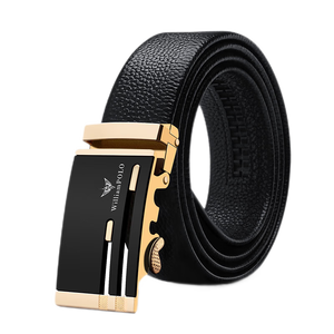 英皇保罗头层牛皮黑金皮带