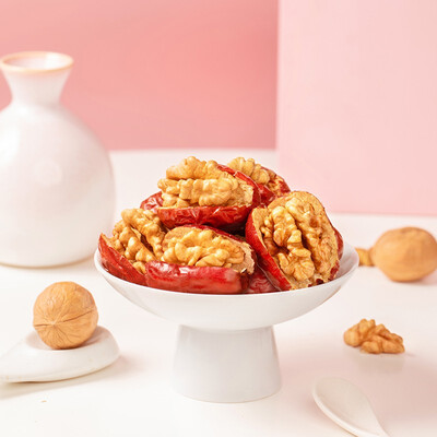 红枣圆润饱满,核桃酥脆可口,吃在嘴中不仅口感香甜,而且还有着双重营养,吃完一个还想吃。