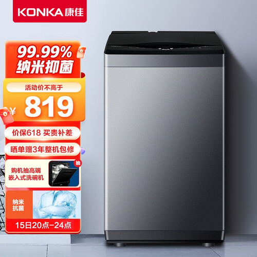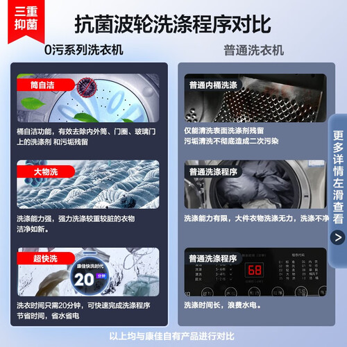 拥有10KG大容量,可一次洗净多件换洗衣物;并且含有一键清洁程序,能够减少污渍残留,洁净更彻底。