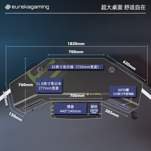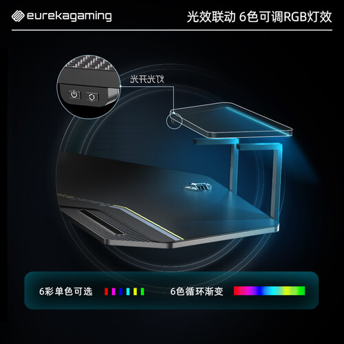 采用双层面板的设计,分开放置设备,满足置物的需求。拥有RGB灯效,渲染战斗氛围,激发你澎湃的战斗欲望。