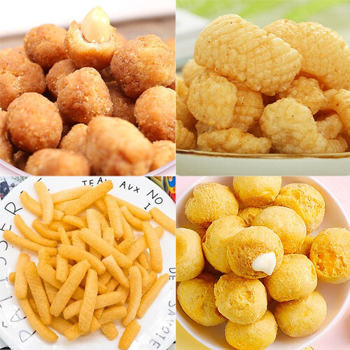 内含独立包装,足有60包,一次过瘾也适合分享。奶油泡芙、虾条、鱿鱼酥等,咸甜皆有,非常满足。