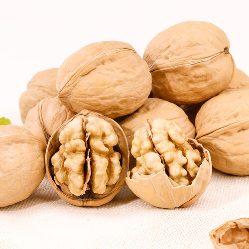 新疆原产大个核桃,果肉酥嫩清香,入口让美味在舌尖跳动。核桃皮薄易剥,老人小孩轻剥就开,美味轻松享用。