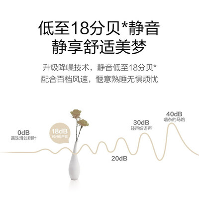 拥有防直吹功能,开启后可避免直吹,老人孩子都可安心使用。搭载升级降噪技术,声音低至18分贝,不扰夜间熟睡。