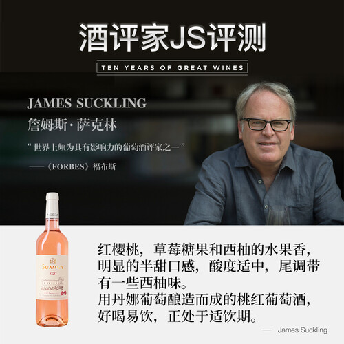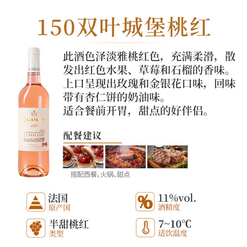 淡淡的粉红色酒液,颜色清透,芬芳的水果香气扑面而来。适合餐前开胃,与甜点搭配很合适,酒香甜蜜芬芳。