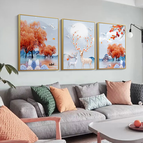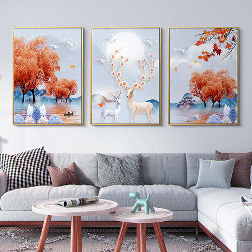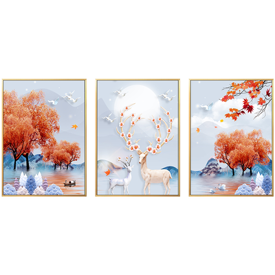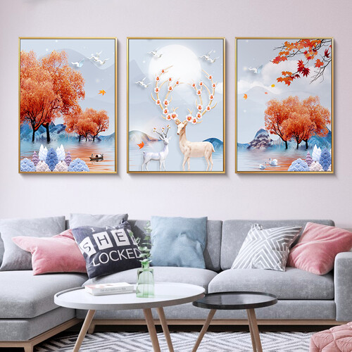 充满北欧风格的一款装饰画,鹿一直是幸福、吉祥的象征,加以繁花点缀,具有美好寓意;用三联画的形式呈现,感受艺术之美。