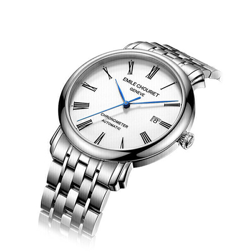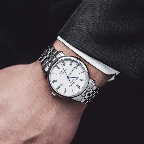 蓝色细柳叶针配上珐琅白表盘以及精钢表带,让腕表简约中透出几分精致感。瑞士天文台认证的全自动机械机芯,确保走时准确。