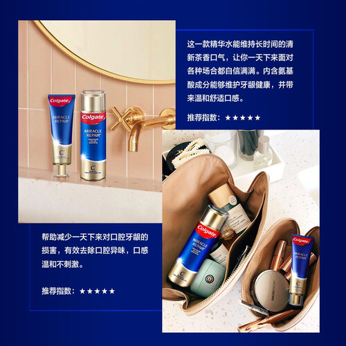 含有高纯度氨基酸,能减少牙结石形成,为牙齿健康保驾护航。臻选自然原萃绿茶,口气长达12小时保持清新,开口便能茶香四溢。