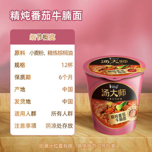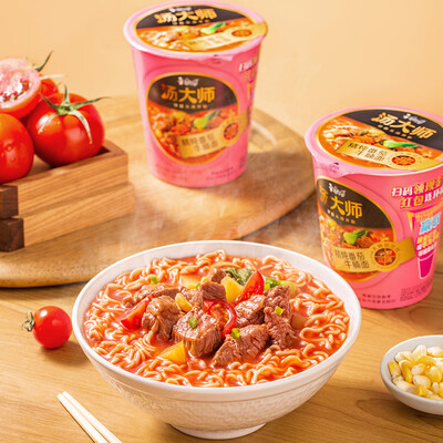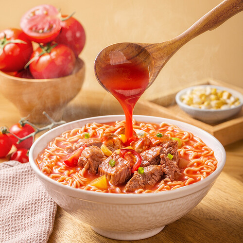 精挑细选上等的牛肉搭配西红柿经过文火慢熬,口味酸甜不咸不腻。甄选优质的小麦,制作富有弹性的面条,爽滑Q弹。