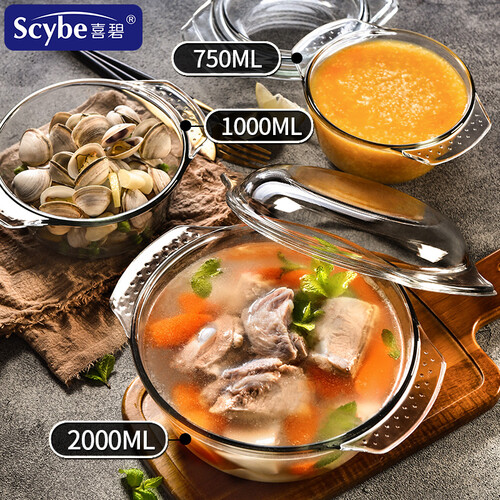 喜碧 约克带盖耐热玻璃双耳汤碗