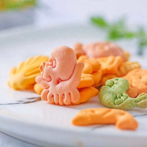 这款饼干萌趣的外观造型,看起来可爱有趣,深受小朋友们的喜欢。小小的体积,一口一个吃起来酥脆浓郁,相当过瘾。