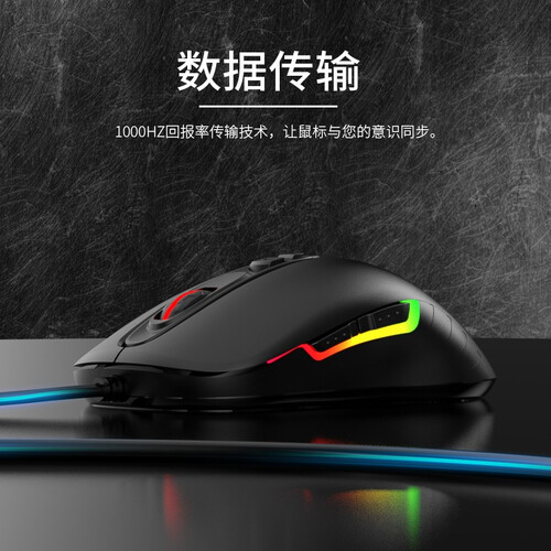 黑爵这款鼠标采用对称式人体工学设计,适应不同握持姿势,细腻的磨砂上盖带来舒适触感。