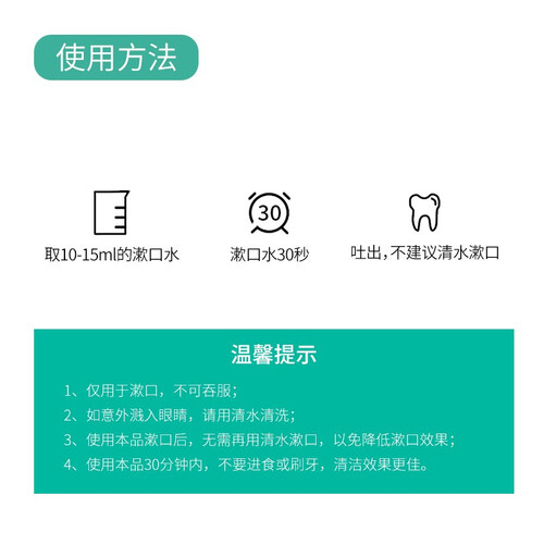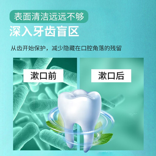 具备深层清洁功效,直达口腔盲区,彻底清除污垢残留并保护牙齿;薄荷净化成分,轻松解决口气问题,使用后口腔清爽舒适。