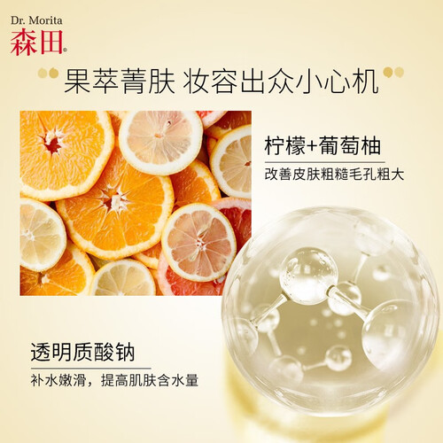 将透明质酸钠和柠檬、西柚精粹科学糅合在一起,可直达干燥肌底润泽滋养,细致粗大毛孔,提升妆容的自然服帖感。