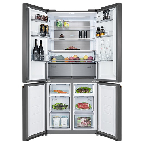 拥有517L大容量,科学划分区域,满足多口之家吃囤鲜需要,无需频繁采购。内置生态保湿舱,智能调节湿度,干湿分储更省心。