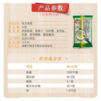 紫菜味道纯正,香脆口感,鲜香但不会咸,可以安心当作悠闲零食。一袋里有12小包,密封性好,独立包装,不易氧化。