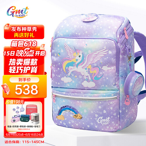采用轻量化设计,自重0.75kg,减轻背负压力,包身带有护脊背板,保护孩子脊柱健康。选用防泼水、抗菌面料,使用健康打理起来更方便。