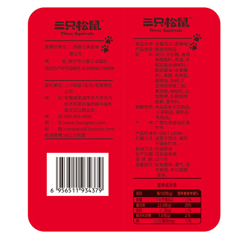 三只松鼠 老卤卤制 无骨凤爪