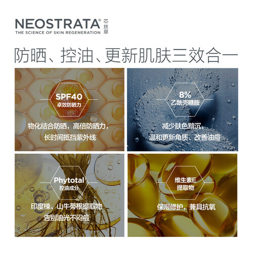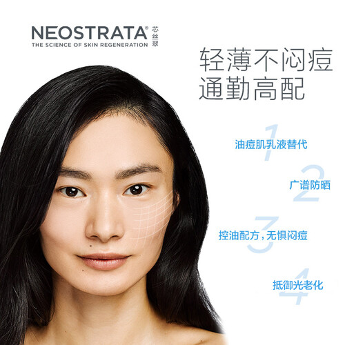 控油水感配方使得防晒乳更加轻薄,不会有闷痘的情况。协同控油亮肤技术,也带来了三效合一的品质。