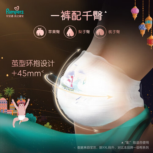 拥有大吸量,满足整晚使用需求,让宝宝放心入睡。同时牢牢锁住尿液,瞬间吸收不反渗,干爽柔和守护娇嫩肌肤。