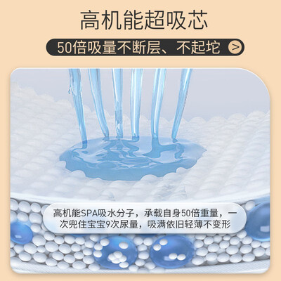 0.2厘米的薄度,材质轻盈穿上可以自由地活动行走,减少负重感。一片可吸收9次尿量,安然舒睡一整晚,不用起夜。