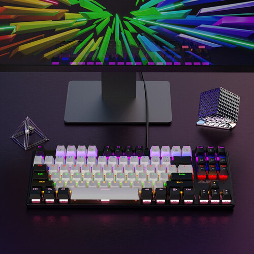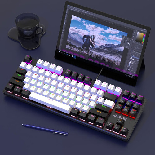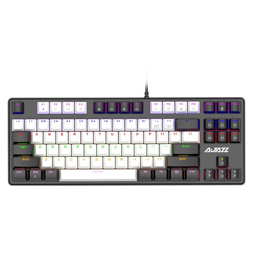 采用黑白双拼的造型设计,独特个性,精致时尚。配备优质青轴,拥有长久的敲击寿命,即使长时间使用也依然稳定无忧。
