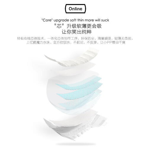 相较于其它纸尿裤,安儿乐拥有更加轻薄的质地,穿在身上犹如无感一般,即使在夏天与肌肤贴身接触,也不易产生闷热情况。