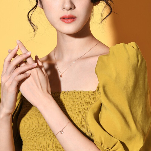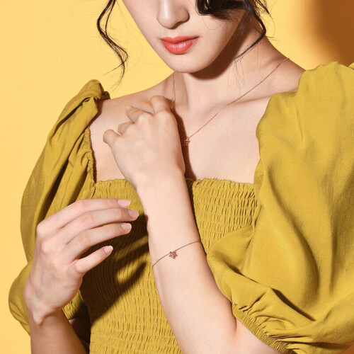 链身点缀的精美星星图案,可增添手链亮点,彰显出女士优雅气质。18K金材质的设计,光泽亮丽,且久戴不易褪色生锈。