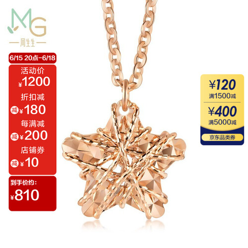 吊坠使用星形设计,使用花丝工艺制作,造型精致小巧。链长约45cm,长度适中,能够很好的拉长颈部线条,使脖子显得修长美丽。