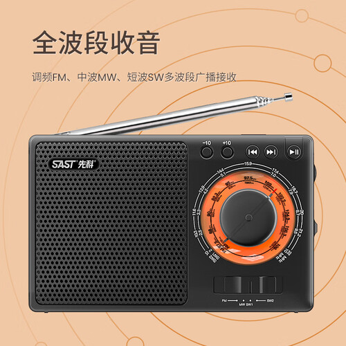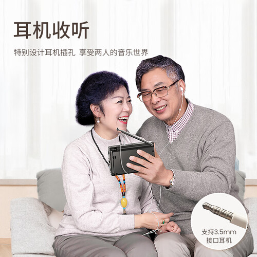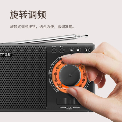 配置的耳机插孔,人性化的设计,不外放不打扰,自己尽享美妙音乐。旋转式调频按钮,轻松选台,微调零误差。
