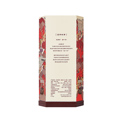 精选五种天然优质谷物,传承六百多年的古法酿造,蒸馏出的酒液清澈饱满,滴滴透亮,挂杯感明显,口感醇厚绵长。