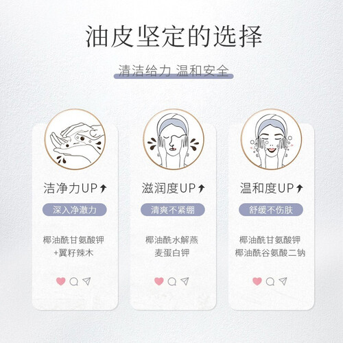 蕴含了椰油的成分,为脸部温和洁净,洗后不会紧绷。4重氨基酸物质,洗后不假滑也不会紧绷,脸部肌肤倍感舒适。