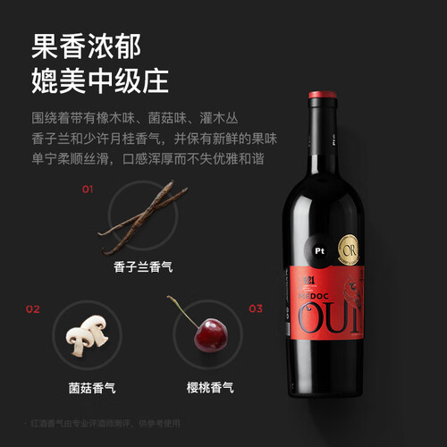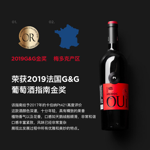 源自法国原瓶进口葡萄酒,其酒色深邃,果香优雅,口感丰富紧致,非常和谐,饮后令人十分愉悦。