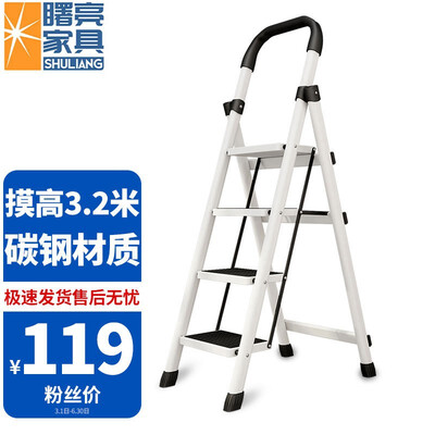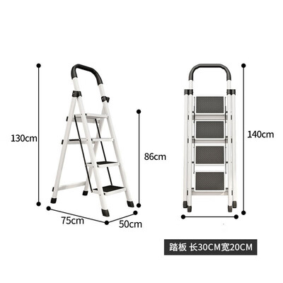 四步梯身设计,轻松满足多种家居作业;嵌入式横梁设计,更加坚固耐用;加宽踏板设计,踩踏无悬空感。