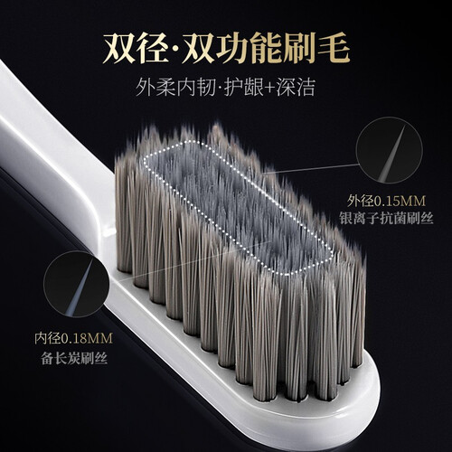 高密度加细磨尖软毛,温柔对待每颗牙齿,呵护敏感牙龈;采用银离子抗菌刷丝,减少细菌滋生,洁净同时抑菌。