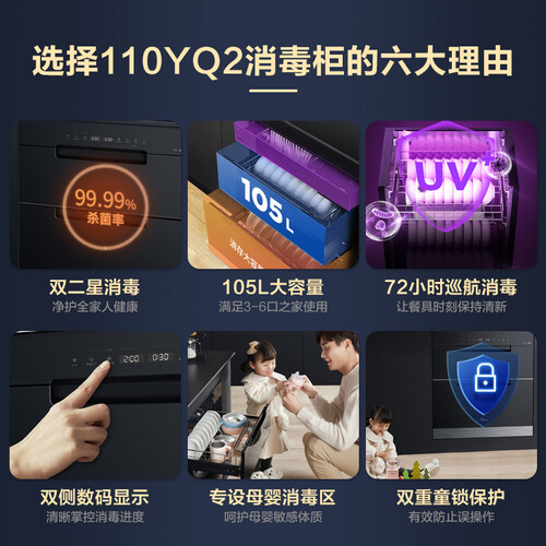 箱体内部有三层分储空间,容量更大,分类消毒更方便。设置母婴消毒专区,多人用餐不会交叉感染,饮食更加健康安全。