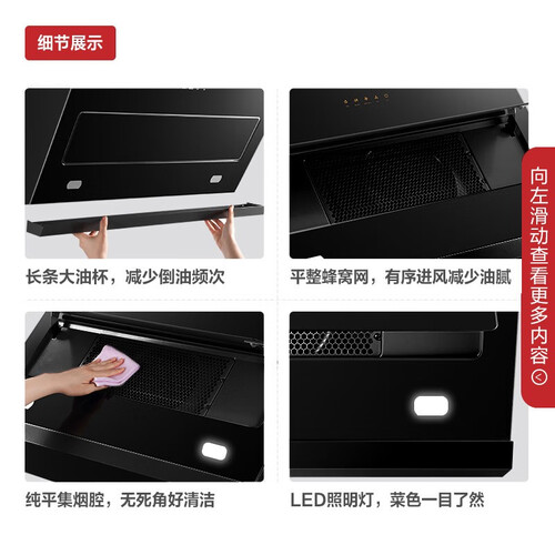 配置大容量油杯,可容纳更多的污油,避免频繁倾倒的麻烦。具有每日换气的功能,可以减少厨房油烟和臭味,使空气更清新。