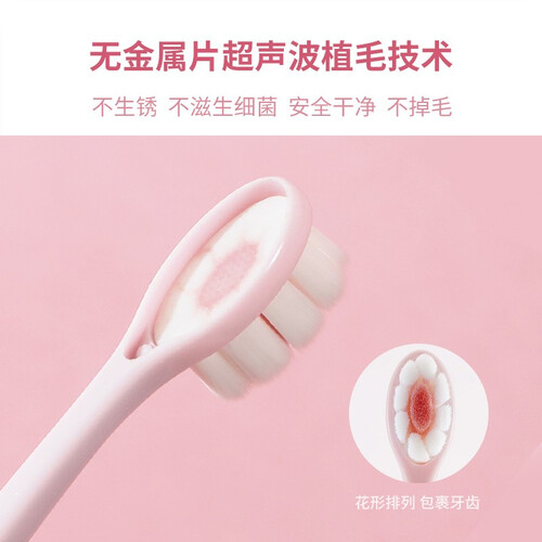 十分柔软护齿的牙刷,具有八倍的植毛密度,多方位包裹牙齿,洁齿更护龈,同时刷柄增加防滑图案,抓握舒适不易掉落。