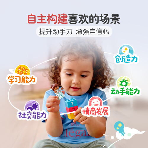 大颗粒积木设计,易于抓握,更有效的防止啃咬的宝宝误吞。丝网印刷技术,颜色鲜明不易掉色,同时不刺激肌肤。
