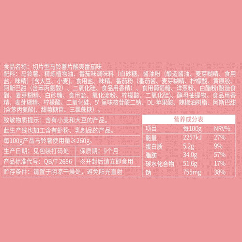 采用创新切片技术,使得土豆片更加纤薄,炸后也更酥脆。酸爽番茄的味道,带有一丝丝甜味,更能刺激你的味蕾。