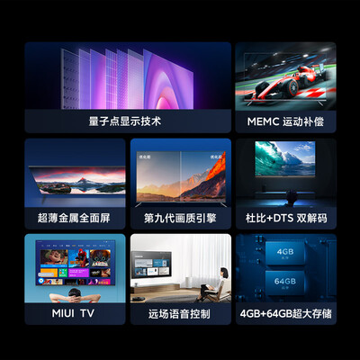 量子点显示屏,色彩更逼真,带来震撼视觉体验。MEMC技术,防止产生拖尾,提升画面清晰度。金属机身,抗腐蚀,使用寿命长久。