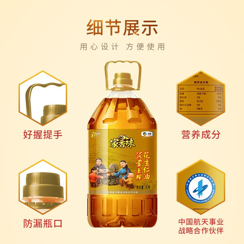 甄选沂蒙去皮花生原料,取材新鲜纯净,自然健康的好品质,可放心食用。采用古法压榨工艺,香气馥郁四溢,口感醇厚。