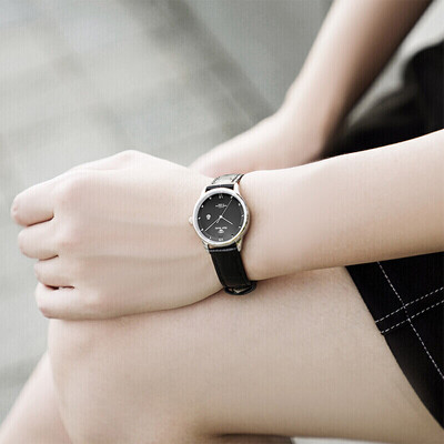 表带选用优质的皮质材质打造,触感细腻柔软,久戴不易产生闷热感。经典的黑色表盘和表带,简约大气,适合多种穿搭风格佩戴。